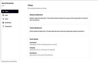 This prototype was used as the blueprint to build the real brand standards using Standards.com. Some design elements needed to change due to the platform's limitations.
