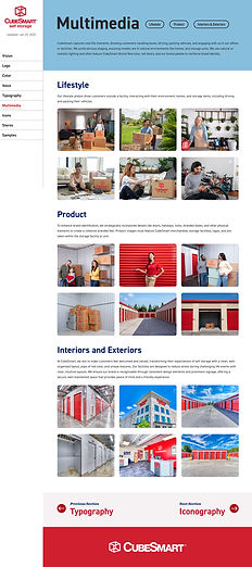 CubeSmart needed a more efficient way to share its brand standards with both internal teams and external partners. The existing method—a static, 54-page PDF—was cumbersome, difficult to navigate, and prone to versioning confusion and misplacement. This outdated process created a significant obstacle to maintaining a consistent brand identity across all platforms.